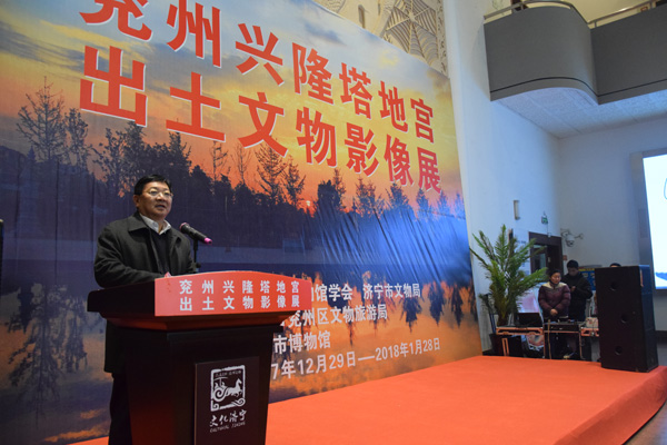 ??? 天时人事日相催,冬至阳生春又来。 ? ? 为深入贯彻落实党的十九大精神和习近平总书记“让文物‘活’起来”的要求,坚定文化自信、推动文化繁荣;在2018年元旦即将来临之际,由山东省博物馆学会、bet365体育在线怎么样主办,济宁市兖州区文物旅游局协办,济宁市博物馆承办的《兖州兴隆塔地宫出土文物影像展》在济宁市博物馆开幕了。