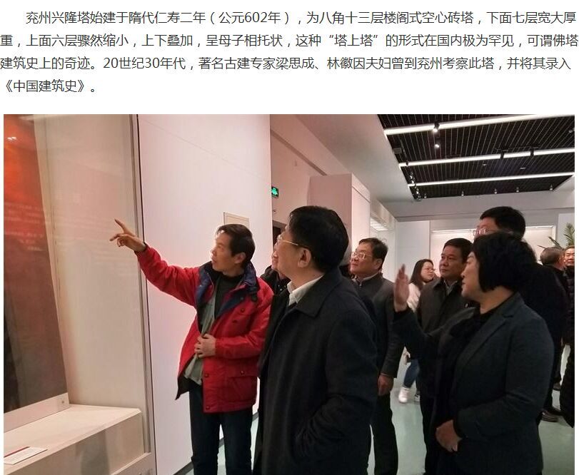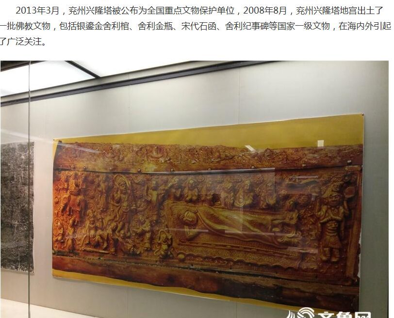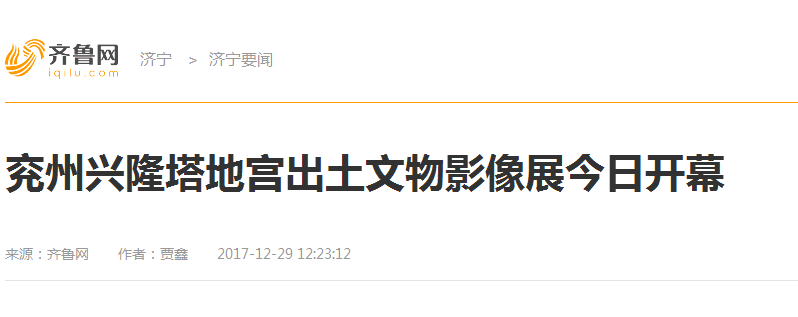 ????? 本次展览直观展现兖州兴隆塔地宫出土文物形象和济宁市兖州区推动中国特色社会主义文化创造性转化和创新性发展的成果。《兖州兴隆塔地宫出土文物影像展》由山东摄影家、高级记者侯新建拍摄,展览在济宁市博物馆展出至2018年1月28日结束。