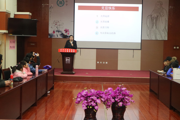 ? ? 伴随着喜气洋洋的音乐,活动正式开始,在宣讲老师的讲解下孩子们了解了元旦的历史,习俗,当宣讲老师提到与元旦有关的古诗时,小朋友们纷纷举手并回忆语文课本里学到的诗句,家长们连连点头称赞,自豪之情溢于言表!?