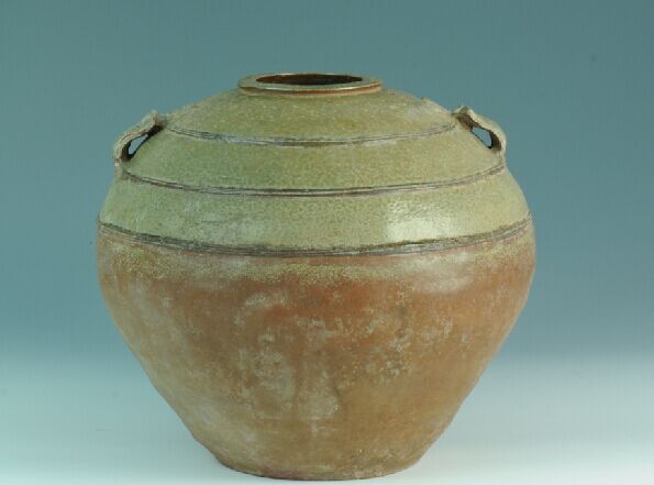 ?????????????????????????????? 描述:敛口,溜肩,肩部饰附耳,绿釉,底部护胎,釉暗红色。